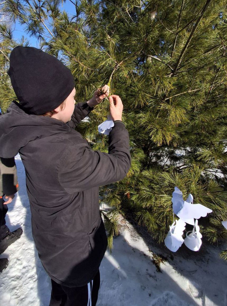 Під час заходу учні виготовили паперових білих ангелів — символ світлої пам'яті, чистоти та вдячності героям. Діти прикріплювали янголів на дерево пам'яті, висловлюючи таким чином свою шану та шанування до подвигу загиблих.