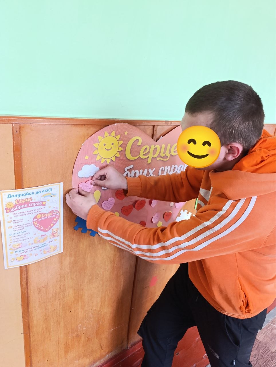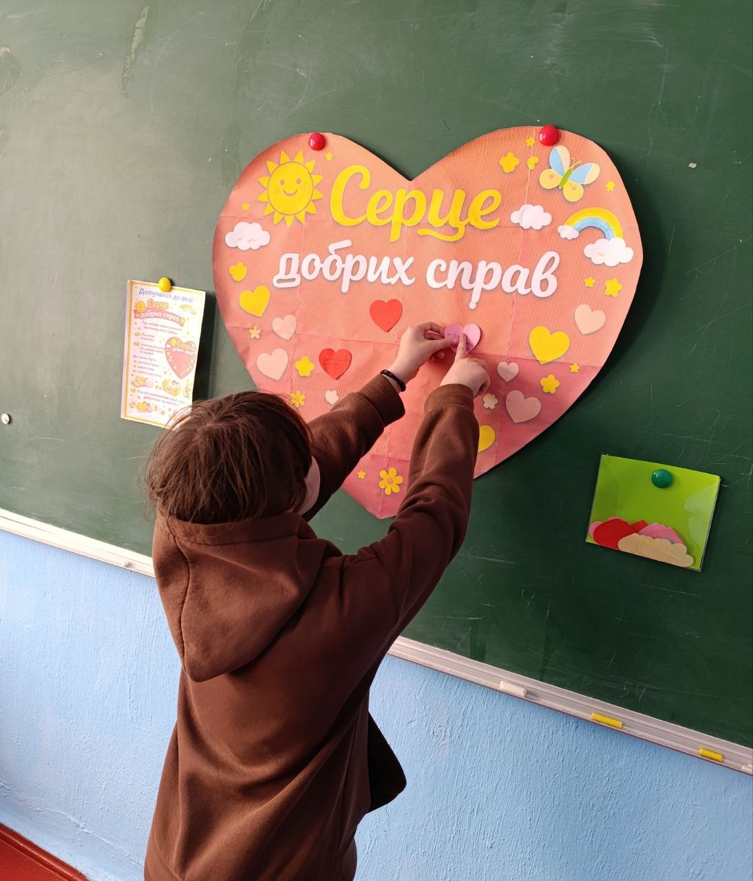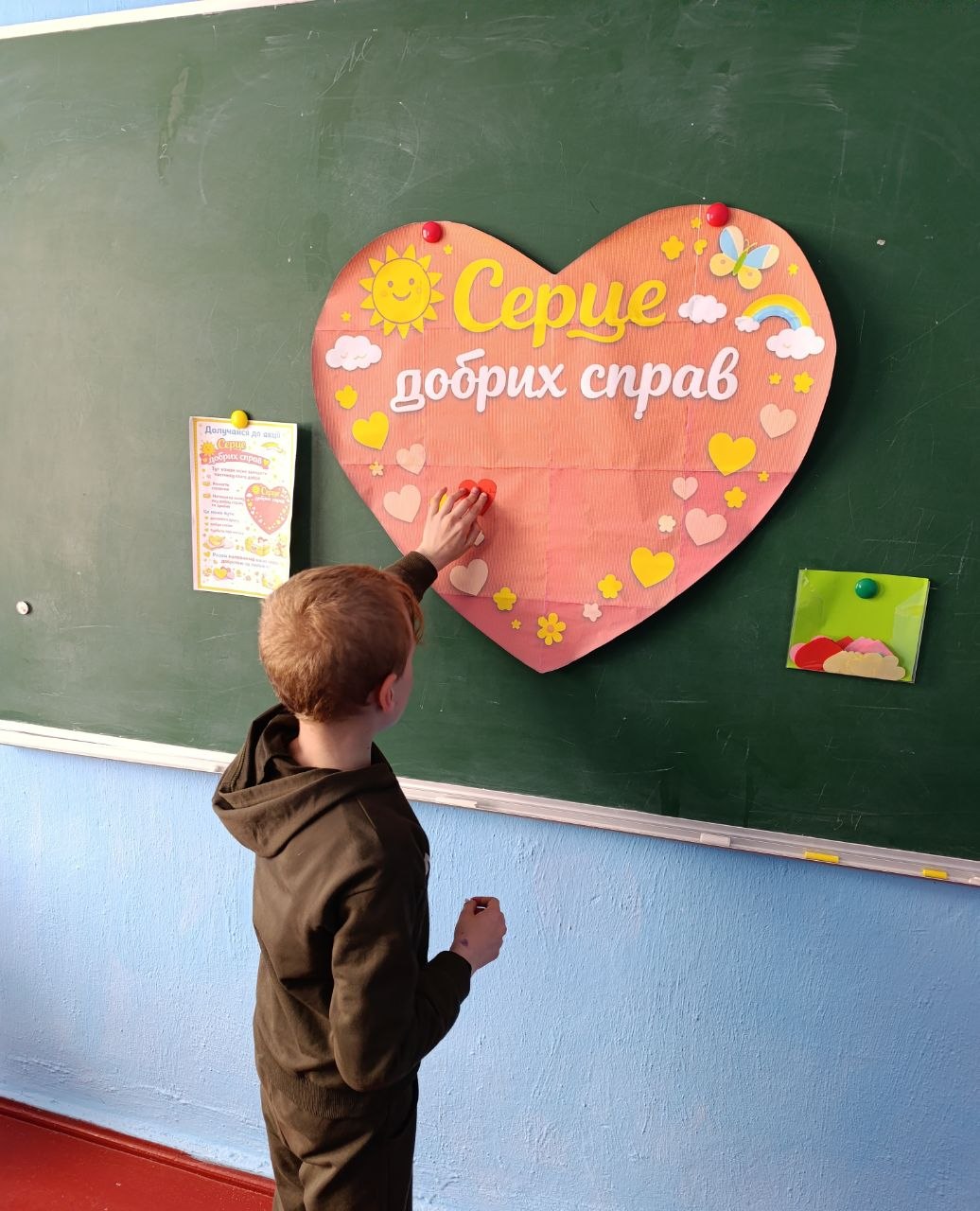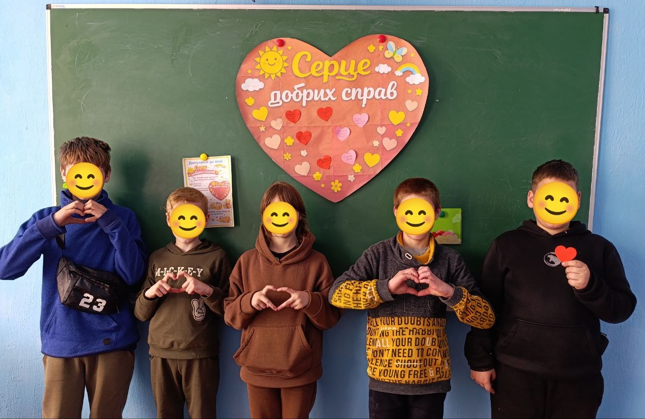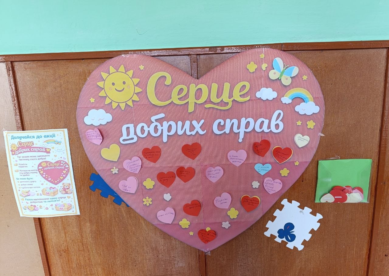 Під час акції “Серце добрих справ” вихованці долучилися до створення спільного серця, наповнюючи його добрими вчинками, щирими словами та теплом своїх сердець.