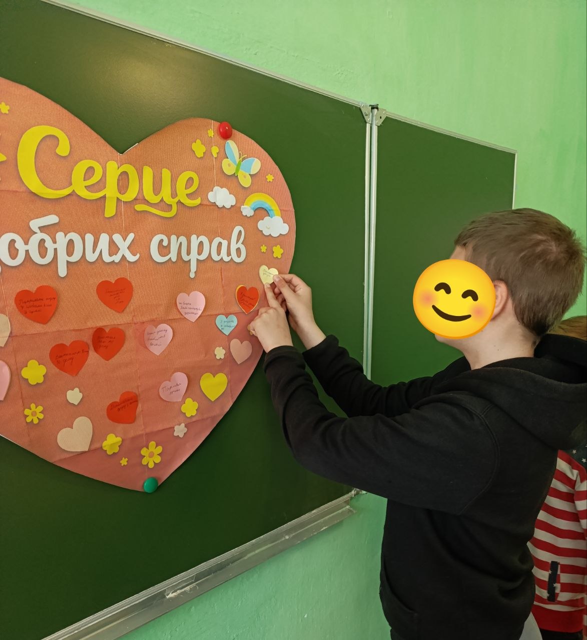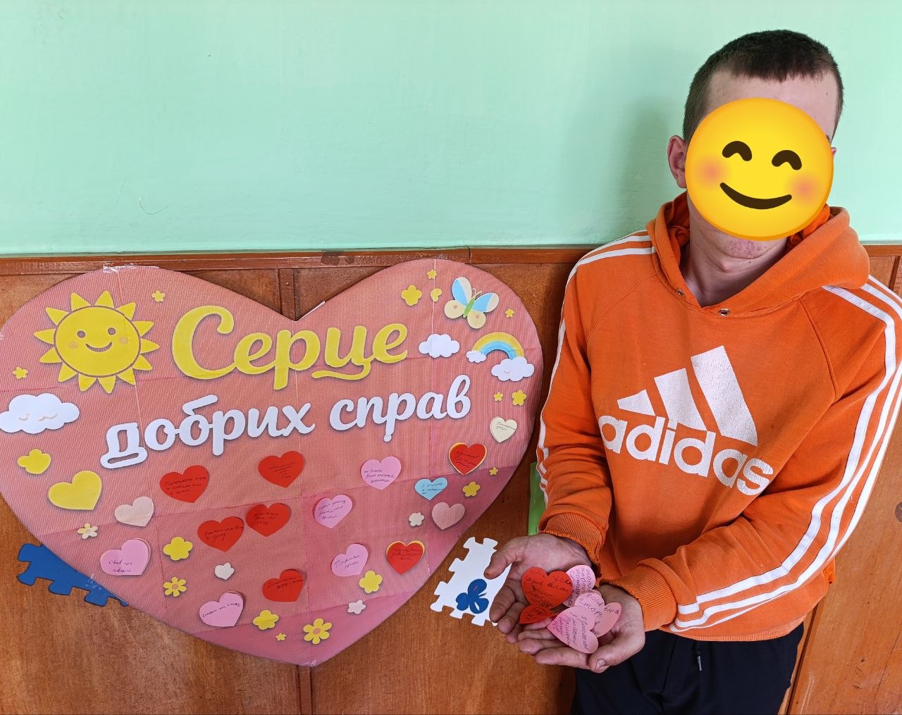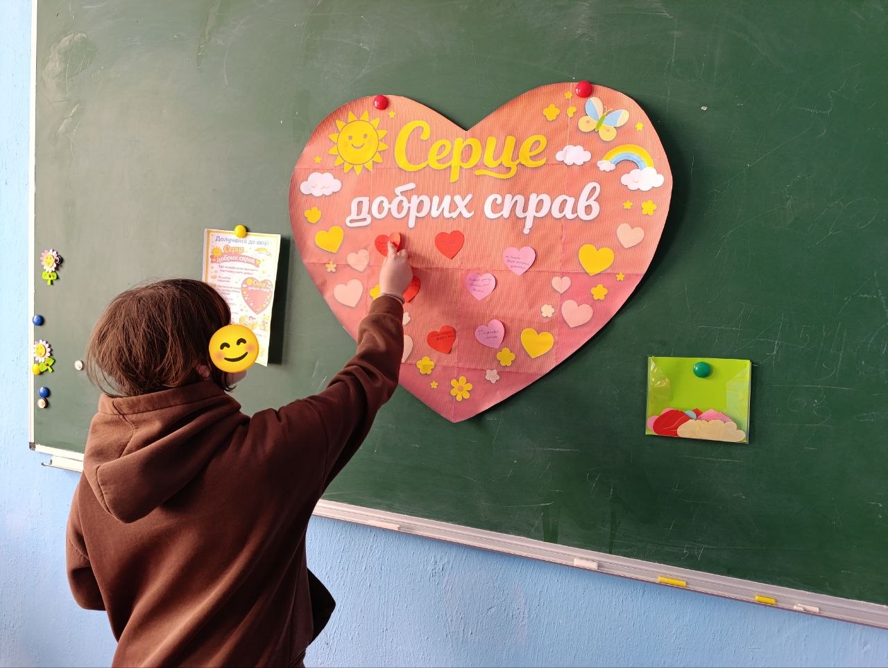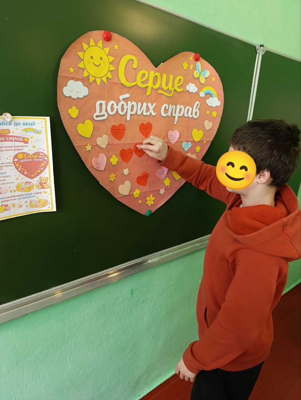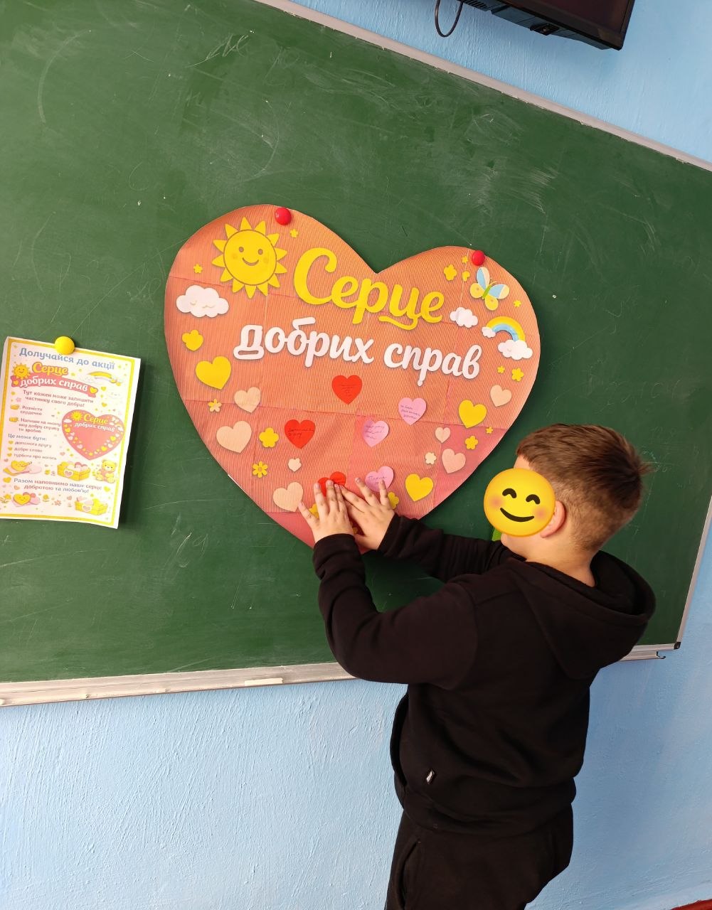 Під час акції “Серце добрих справ” вихованці долучилися до створення спільного серця, наповнюючи його добрими вчинками, щирими словами та теплом своїх сердець.