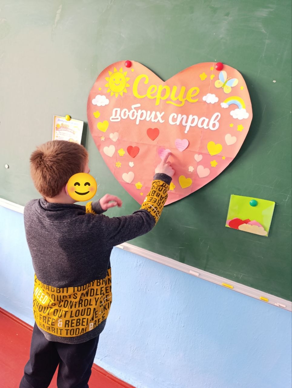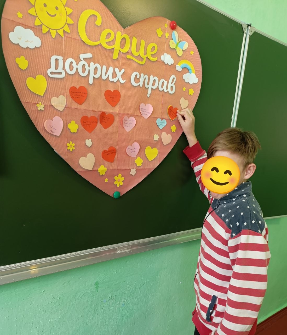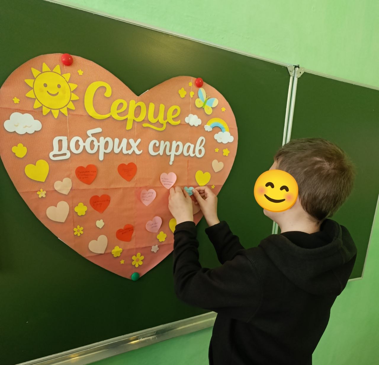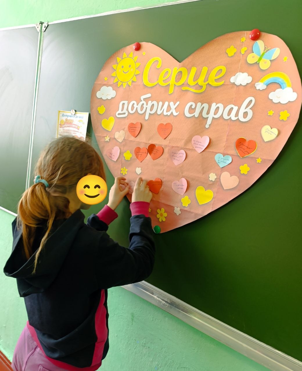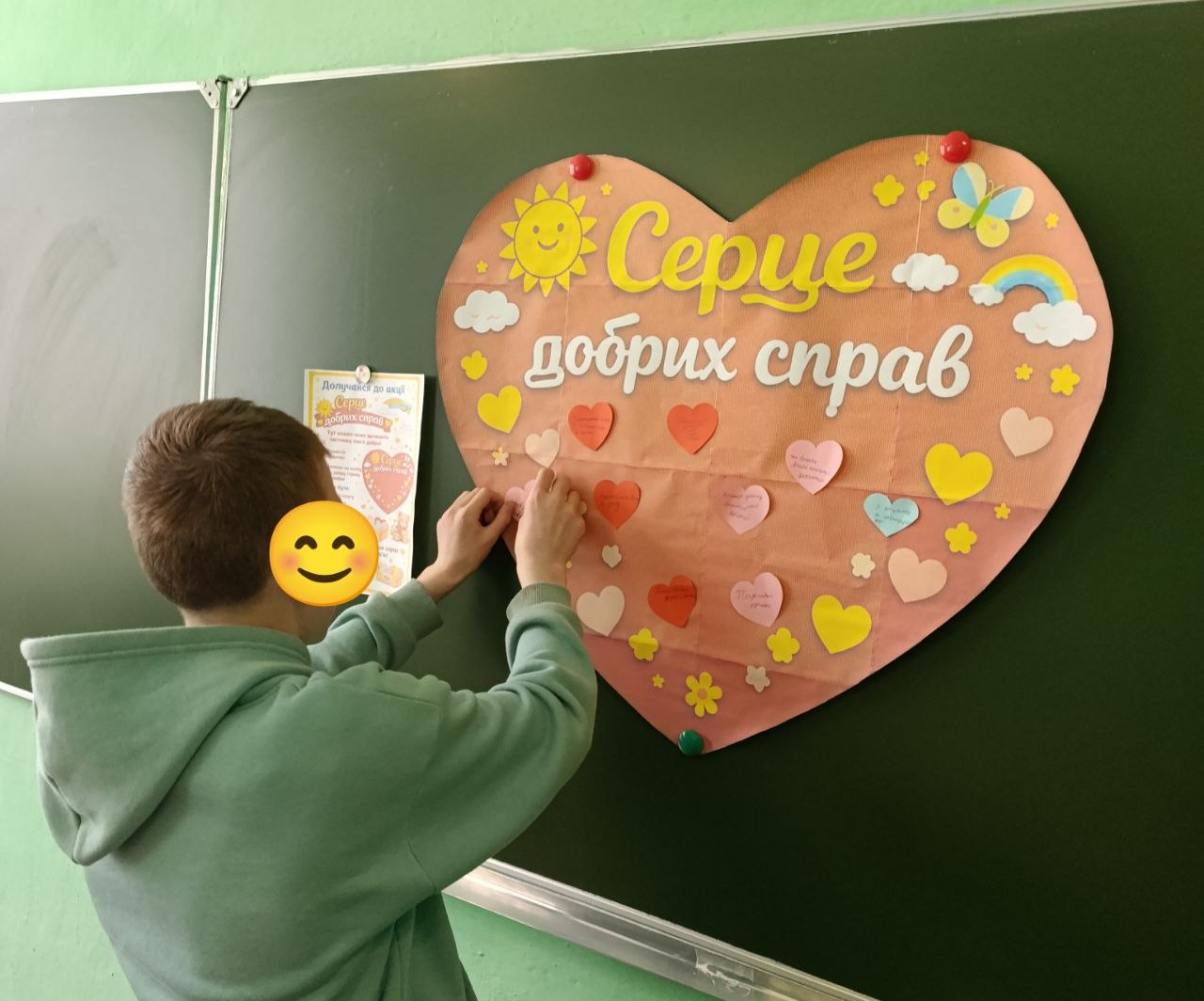 Під час акції “Серце добрих справ” вихованці долучилися до створення спільного серця, наповнюючи його добрими вчинками, щирими словами та теплом своїх сердець.